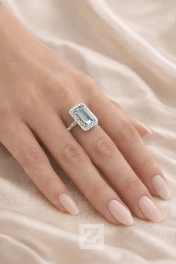 Anillo con Aguamarina y Diamantes
