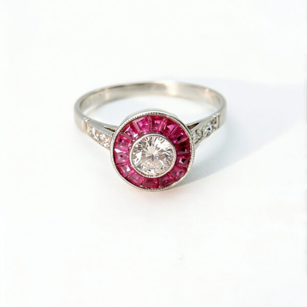 Anillo «ojo de perdiz» con Diamante central y Rubies.