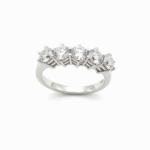 – Un Diamante natural, central y talla brillante con un peso de 0,35 quilates, engastado en chatón. Calidad si1 – H. 14 rubies naturales, talla trapecio con un peso total de 0,70 quilates, engastadas en carril. 4 diamantes naturales engastados en grano.