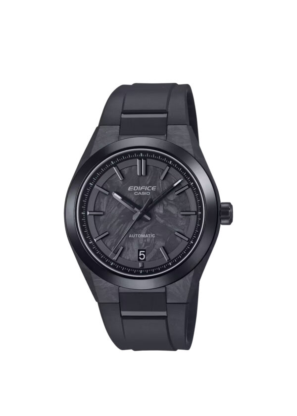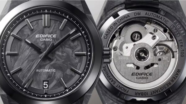 Te presentamos el EFK-100XPB, un reloj analógico de tres agujas que reinterpreta el diseño clásico de EDIFICE con una caja fabricada en forged carbon (carbono forjado), un material de alta rigidez y ligereza.
