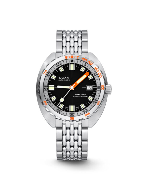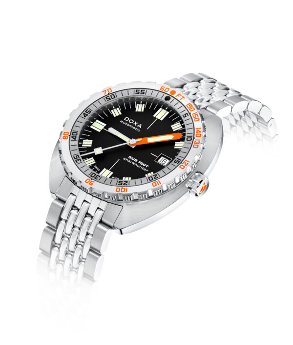 Hoy, DOXA trae este icono al presente con un diseño completamente renovado. El nuevo SUB 750T conserva el ADN del original con su presencia audaz, su construcción sin concesiones y su robusta fiabilidad, al tiempo que introduce una silueta más delgada y moderna. La caja rediseñada sigue siendo sustancial, con unas dimensiones de 45,00 x 47,00 mm, pero se ha refinado hasta alcanzar un grosor de 11,95 mm, lo que la hace más ligera, más cómoda y más adecuada para el uso contemporáneo.