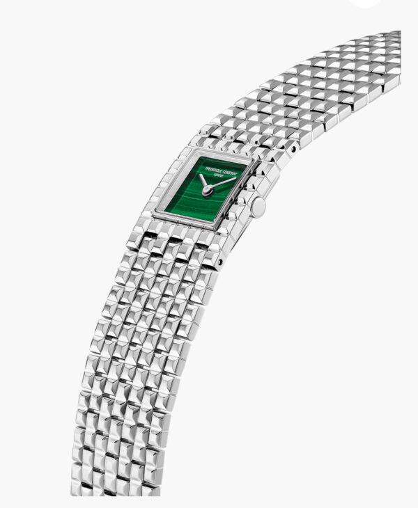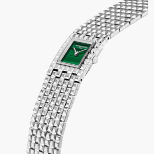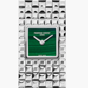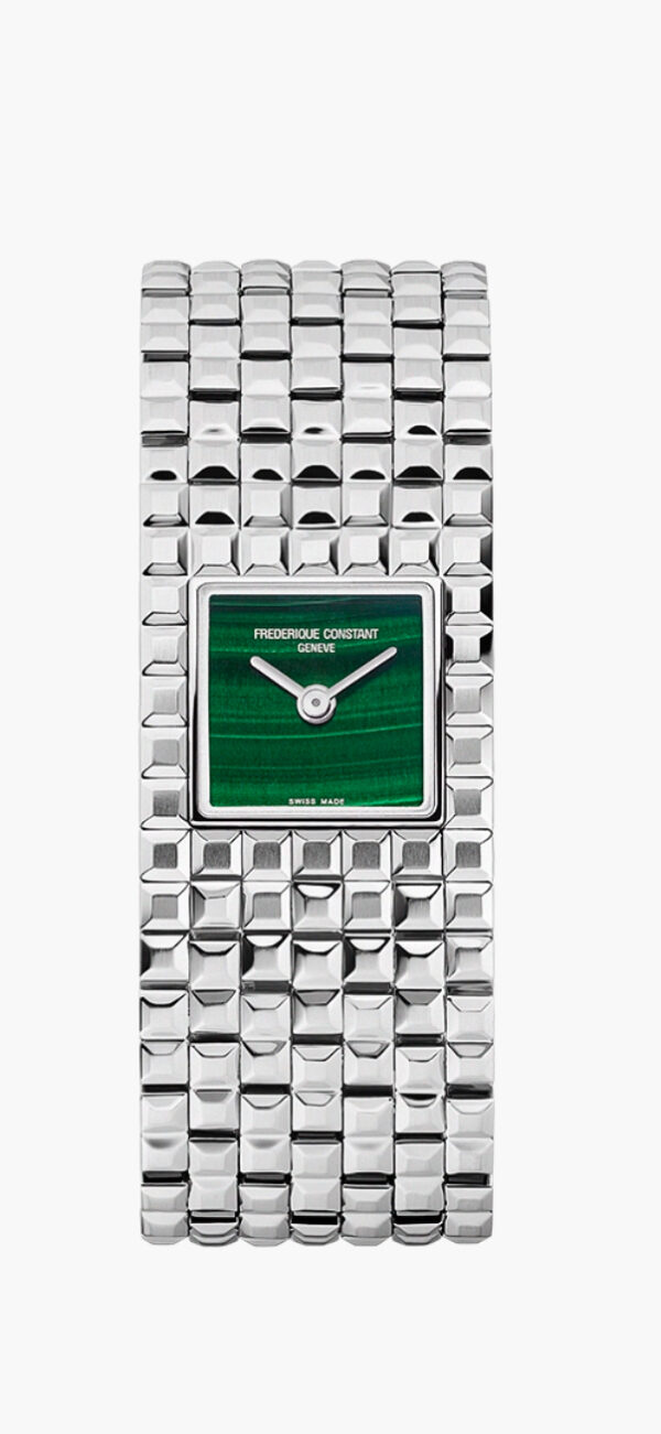 ¿Alguna vez has tenido la sensación de que la relojería es siempre más de lo mismo? Frederique Constant sabe perfectamente cómo renovar las cosas con estilo. La Manchette de la manufactura ginebrina, ausente de la colección durante más de veinte años, vuelve ahora con un toque sexy y glam-rock a lo que sin duda debe considerarse como el reloj de pulsera definitivo: una elegante pulsera con un patrón cuadrado Clou de Paris en relieve que se repite en la esfera (también cuadrada), disponible en cuatro versiones diferentes para satisfacer todos tus caprichos: una pieza con incrustaciones de joyas, dos alternativas minerales en malaquita y ónix, y una cuarta versión en acero mate.