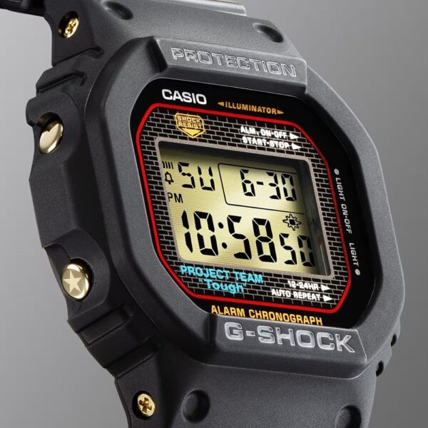 Exprésate con los nuevos modelos Clear Remix del 40.º aniversario de G-SHOCK: populares diseños construidos con componentes transparentes para lograr un look más que claro. Los materiales transparentes de la correa, la carcasa, la esfera, la pantalla LCD y los botones, proporcionan una vista al interior del módulo, donde encontramos la marca G y el logotipo G-SHOCK impresos. En la parte posterior de la carcasa luce el logotipo del 40.º aniversario, diseñado por Eric Haze, y la hebilla de la correa está grabada con cuatro estrellas, haciendo un guiño a este aniversario tan especial. Estos detalles y el uso por primera vez de una carcasa transparente, fabricada con diamida de fibra de vidrio translúcido, ofrecen un diseño singular, digno de un G-SHOCK de edición limitada. La nueva línea incluye modelos basados en varios relojes G-SHOCK icónicos: el primer G-SHOCK, el DW-5000; el clásico DW-5600 digital; el DW-6900 con su distintivo diseño de botón frontal; y el GA-2100/GMA-S2100 o el GA-110/GMA-S110, que se pueden utilizar de forma independiente o en conjunto. Carcasa transparente: DW-6940RX, GA-114RX, GMA-S114RX Esfera transparente: DW-6940RX, GA-114RX, GMA-S114RX, GA-2140RX, GMA-S2140RX Pantalla LCD transparente*: DW-5040RX, DWE-5640RX, DW-6940RX Botones transparentes: GA-114RX, GMA-S114RX