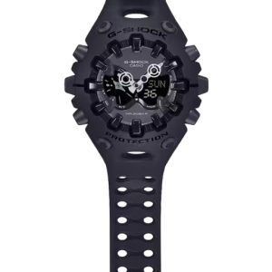 Su exterior combina formas orgánicas con bordes definidos, una gran pantalla LCD completa y una esfera metalizada que resalta su carácter robusto. Además, incorpora la innovadora manecilla de liberación de impactos, reflejando el compromiso de G-SHOCK con la durabilidad sin límites.