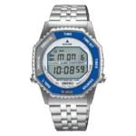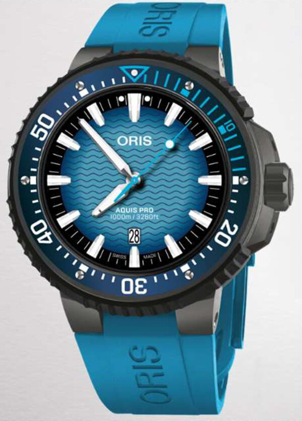 Nuestro reloj de buceo profesional tiene muchos detalles. Su caja de titanio de PVD gris es ligera y duradera; su bisel RSS se bloquea para un control del tiempo de buceo exacto; incluye dos correas de caucho, negra y azul, y cuenta con una resistencia al agua de 100 bares (1000 metros).