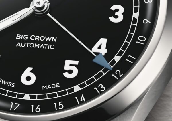 El Big Crown Pointer Date es nuestro reloj insignia. Creado para aviadores con guantes en 1938, y desde entonces ha demostrado el valor eterno del buen diseño. Aquí, su icónica función de fecha en puntero está alimentada por un movimiento mecánico automático de fabricación suiza.