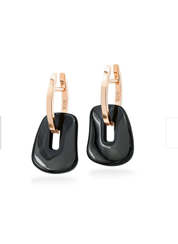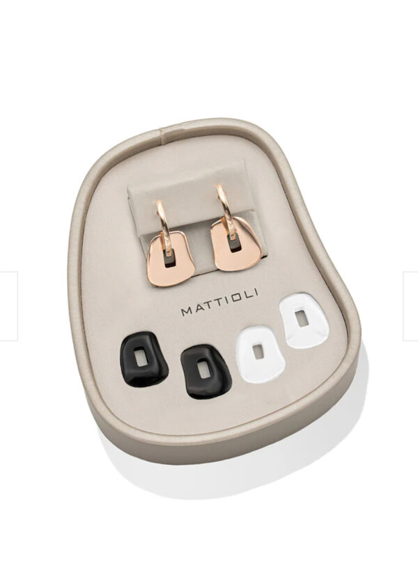 Pendientes puzzle en oro de 18 quilates tres pares de cerámicas en color oro rosa, blanco y negro