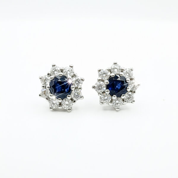 Icono de nuestra colección propia, pendientes de roseta clásicos, joyas especiales que se convertirán historia propia. Diamantes y Zafiros escogidos de una calidad extraordinaria.