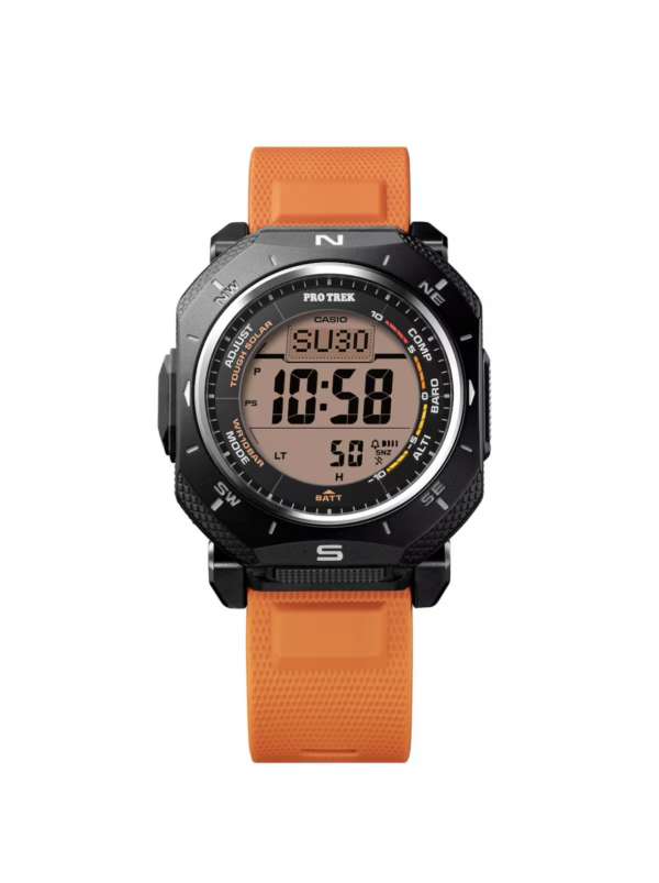 Controla la dirección, la altitud y la presión barométrica con sólo pulsar un botón en el lateral derecho del reloj. Además, la gran pantalla digital garantiza una excelente visibilidad para consultar la información en cualquier condición.