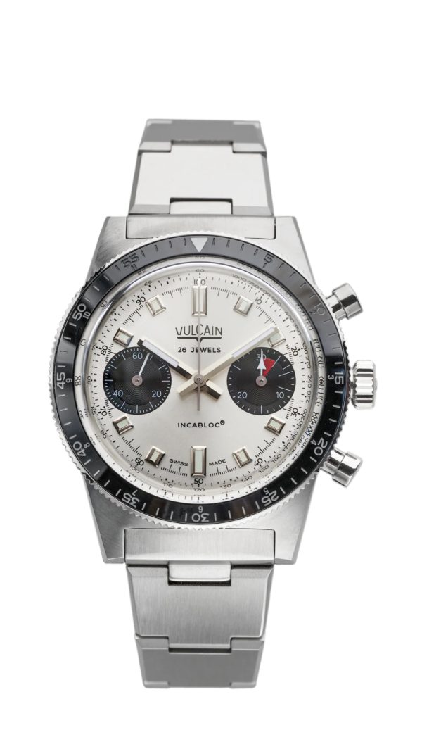 Skindiver Nautique, un modelo que dejó su impronta en el panorama relojero de los años sesenta. Pero la historia no acabó ahí. Pocos sabían que, al mismo tiempo, la manufactura de Locle también había desarrollado una versión cronógrafo de este reloj-herramienta. Escondido del ojo público durante décadas, ahora reaparece gracias a los esfuerzos de investigación y redescubrimiento dirigidos por Guillaume Laidet, que ha estado supervisando el desarrollo de la colección de Vulcain desde 2022. Al recuperar este reloj de los archivos, Vulcain ofrece a los coleccionistas un reloj que es a la vez auténtico y técnico, un verdadero homenaje a la herencia de la marca de relojes de buceo excepcionales.