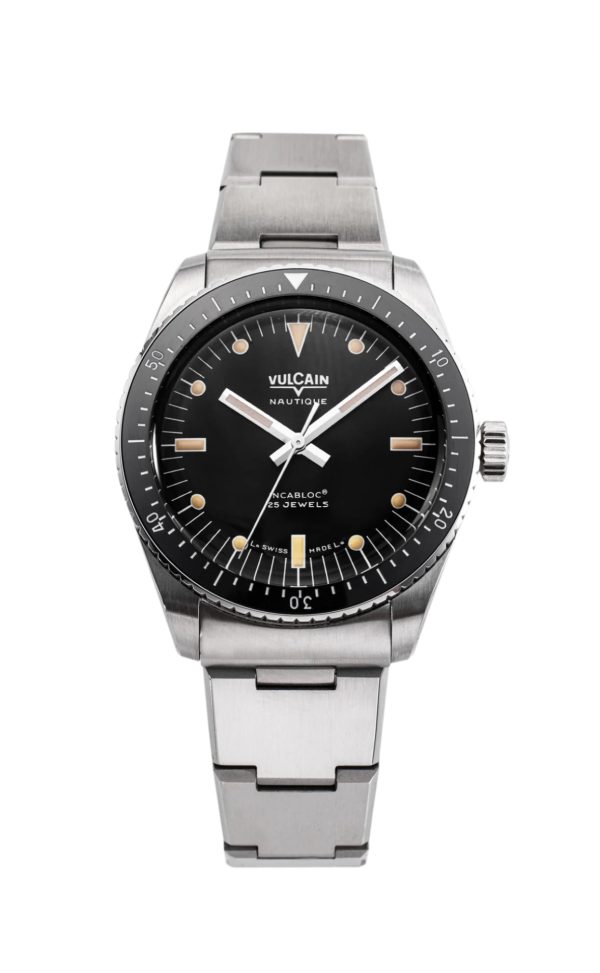 Piense en Vulcain y lo primero que le vendrá a la mente será «Grillo». Eso sería quedarse corto; Vulcain es un tesoro de bellezas relojeras durmientes que resuenan con una vibración nostálgica. El Skindiver Nautique está listo para causar sensación en el mercado vintage. Inspirado en un modelo Vulcain lanzado en 1960, funciona con el calibre automático suizo de tres agujas 2824 de ETA, con una reserva de marcha de 38 horas, el caballo de batalla entre la gama de calibres mecánicos del famoso fabricante de movimientos.