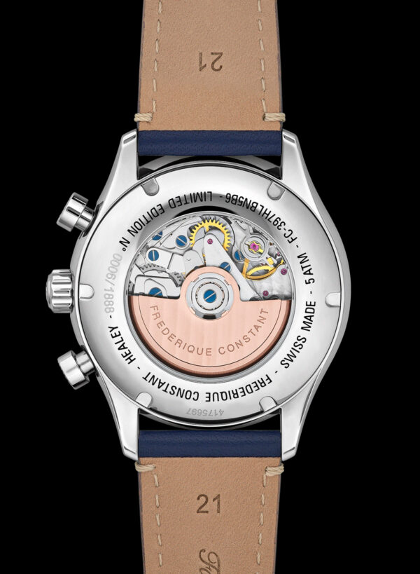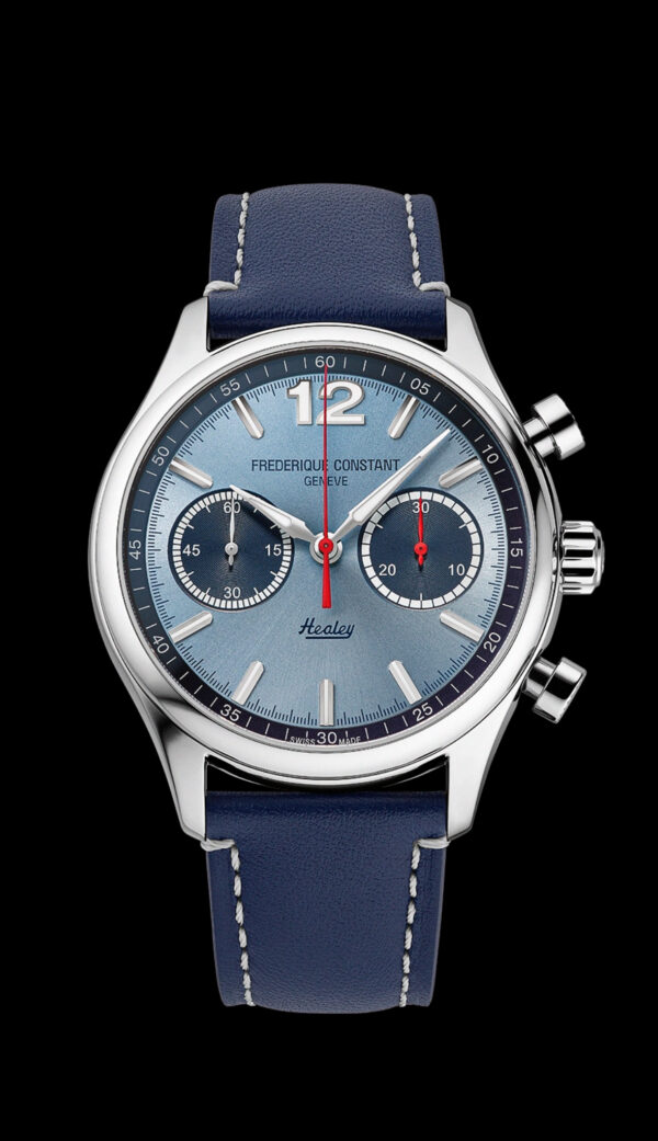 Limitado a 1.888 piezas, este cronógrafo deportivo presenta una caja de acero de 42 mm con fondo abierto y se complementa con una correa de piel de becerro azul marino con pespuntes. la pieza destaca por su diseño dual: dos colores (azul rayos de sol en la esfera y azul marino en el reborde), dos contadores (pequeño segundero a las 9 horas y contador de 30 minutos a las 3 horas) y dos pulsadores, que acentúan su carácter dinámico.